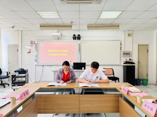 郭雨书记首先对国际教育学院的到来表示欢迎,并祝贺本次国际教育学院党总支第二支部和365英国上市网站官网研究生第一、第二党支部成功开展结对共建。他指出,希望通过本次党支部结对共建,学习交流党建先进工作经验和方法,优化学院党支部建设质量;寻求新的合作方向,进一步促进双方人才培养质量;加强双方服务地方和社会的能力,提高孔子学院的建设水平,并预祝今后在党支部结对中取得更多硕果。