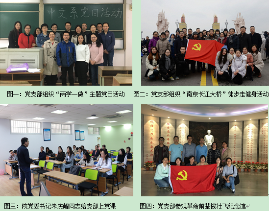 中文系党支部2019年度被授予优秀基层党组织。作为样板支部是江苏省高校实施教师党支部书记“双带头人”培育工程合格组织。支部现有党员26人,其中博士24人,副高及以上职称14人,是一支高素质、有活力的党支部队伍。