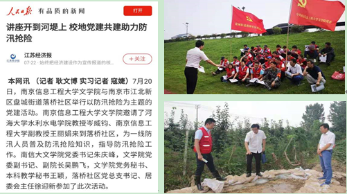 图十六:报报道汛期派专家指导落桥社区党支部防汛抢险工作,被《人民日报》、《江苏经济网》、《百度新闻》客户端报道转载