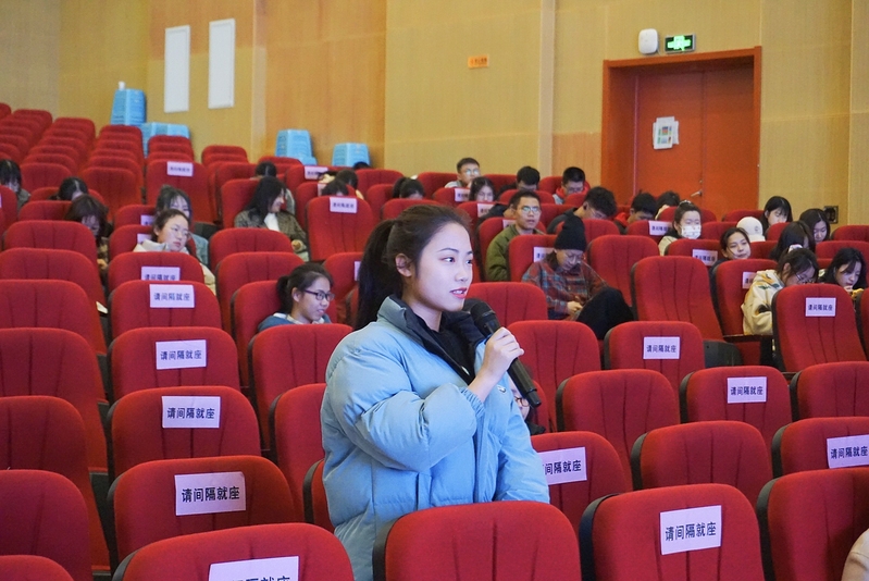 讲座中,饶莎董事长围绕幸福的秘密与沟通的技巧,先是聚焦生活中的一些疑惑,抛出一系列的问题,启迪同学们思考自己对“幸福”和“沟通”的疑惑与期待,与在场同学进行了互动和探讨,并逐一为大家揭开幸福快乐的秘密。她从心理角度延伸解释人们通常感到不快乐的原因,引导同学们探索感受幸福的方法;鼓励大家树立正确的幸福观,志存高远却要脚踏实地,通过奋斗获取真正的幸福。关于沟通技巧,饶莎董事长以自身作为优秀创业女性的典型,向同学们介绍了自己步入职场以及怎样在扑面而来的新事物与人际关系中自处,如何做好与他人的相处和沟通等方面的成功经验。她特别想同学们示范了如何通过“非暴力沟通”的方式取得意想不到的沟通效果,一系列有助于锻炼沟通技能让同学们受益匪浅,还向同学们推荐了相关图书。