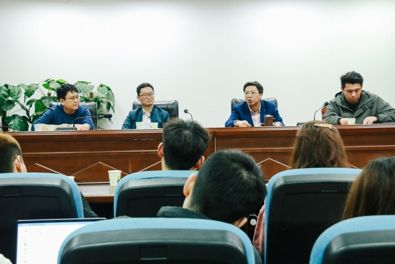 朱庆峰书记首先致辞。他说,学院三年来跟新东方合作所获得的成绩,对于推动公共英语课教学改革,提升学生语言掌控力,特别是在全国英语四六级考试通过率、高分率等显性指标上充分肯定了合作的重要性和有效性。未来,校企合作应在补齐短板、“课程思政”建设和推动藕舫学院主导的高质量竞赛方面开展具象化工作,以跳出企业管理中上课派单式操作模式。