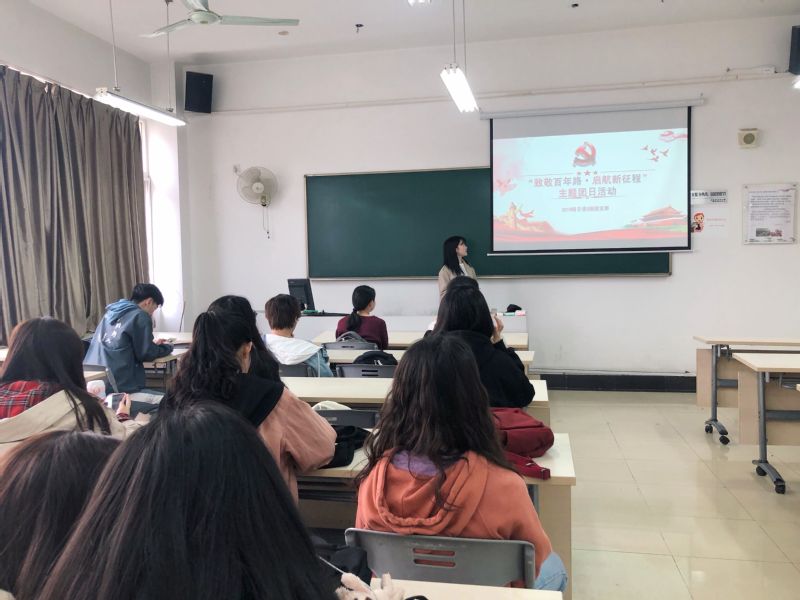 2019级日语2班团支部由团支部书记讲党史的方式领学党在新民主主义时期、社会主义革命和建设时期、改革开放时期和中国特色社会主义新时代的各项思想理论与建设经验,讲述了革命烈士、英雄人物、先进模范的初心使命、成长历程以及为党奋斗的动人故事。2020级汉语言1班开展“三爱”主题班会,分成五个小组,组员共同查找资料、制作PPT,各出一位代表向大家分享“我与南信大”的感想历程,另有两位代表讲述各自家乡先烈前辈的光荣事迹、党的行进路程。2020级英语2班以“作为当代大学生,我们究竟应该如何爱党爱国爱校”为主题,由几名学生代表演讲,直抒自己感想与观点,并结合当前国际国内形势,传达学校学院团委会议精神。