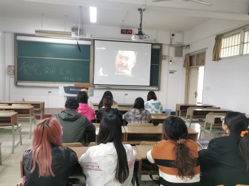 以爱党、爱国、爱校为核心内容,以班级为单位,各年级辅导员、班主任老师主持召开“三爱”主题班会。2018级汉语言文学1班采用学习式、报告式、分享式三种形式进行,学习内容分为党史教育、爱国主义教育和爱校教育三部分,围绕“我眼中的南信大”、“怎样让南信大变得更好”等主题开展激烈讨论。2018级日语1班团支部带领同学们重温了建党之路、建国之路,还学习了南信大党史,并在班会上分享各自的观点。2019级翻译1班团支部集体观影《建党伟业》片段,推选支部代表分享他们所了解的中国共产党成立发展过程中的感人事迹。