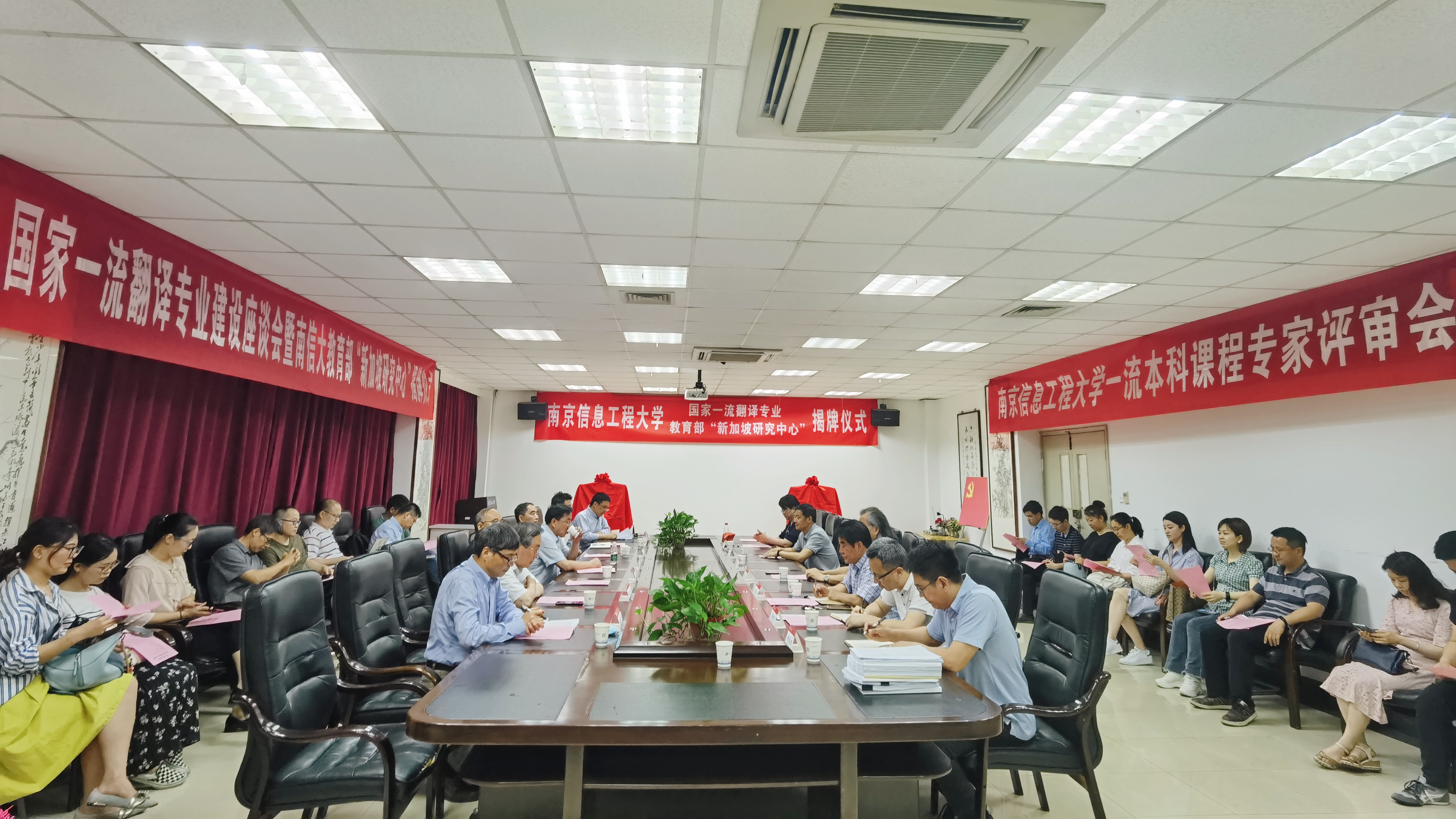 2021年6月3日上午,由365英国上市网站官网、语言文学跨学科研究院、新加坡研究中心联合主办的“国家一流翻译专业建设座谈会暨南信大教育部新加坡研究中心揭牌仪式”在我校文德楼N402举行。会议特邀浙江大学许钧教授、北京外国语大学王克非教授、上海外国语大学冯庆华教授、南京大学杨金才教授、欧洲科学院院士刘康教授参会指导工作。校党委常委、副校长闵锦忠教授出席会议并致辞。社科处副处长朱光,365英国上市网站官网名誉院长李建波,365英国上市网站官网党委书记范勇,副院长、副书记吴鹏飞,副院长李红,副院长杜玉生,各系室主任、学科点点长及365英国上市网站官网骨干教师等参加会议。此次会议积极响应教育部“新文科建设”会议精神,旨在助力学校双一流建设战略,促进南信大国家一流翻译专业建设及南信大教育部“新加坡研究中心”内涵式发展。