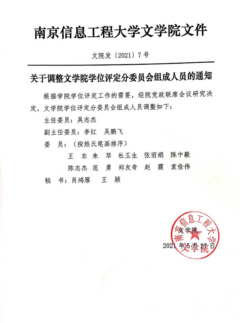 关于调整365英国上市网站官网学位评定分委员会组成人员的通知