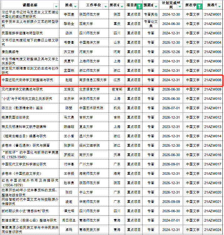 国家社科基金重点项目主要资助学术分量厚重、创新性强、对学科发展具有重要推动作用的研究成果,每项资助金额为30至35万元。本年度重点项目立项全国共370项,其中中国文学学科立项共24项,江苏省高校立项1项。赵超老师长期致力于唐宋文学研究,尤其是宋代诗歌的阐释和传播研究,此前已经主持完成了国家社科基金青年项目和教育部人文社科基金青年项目各1项。
