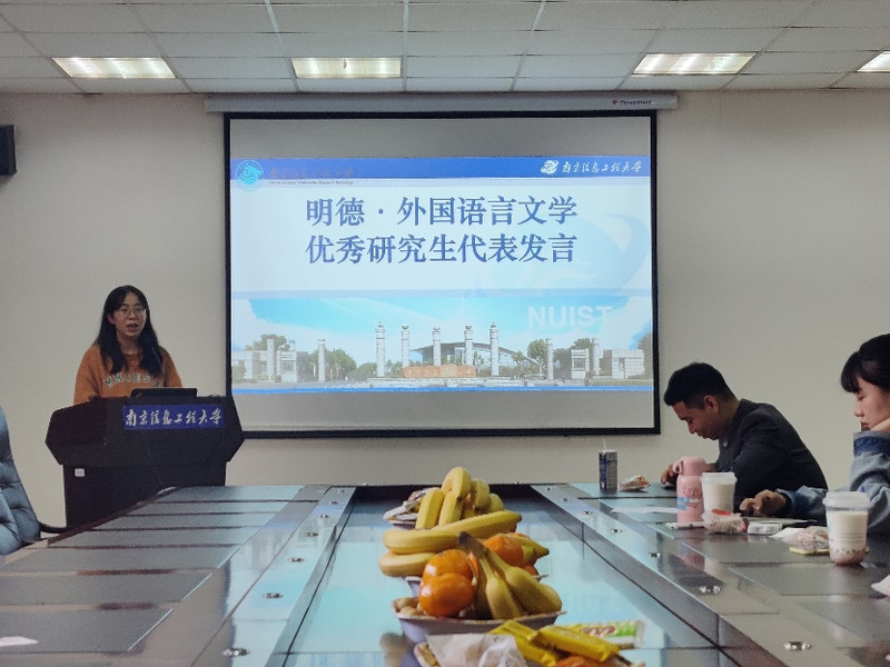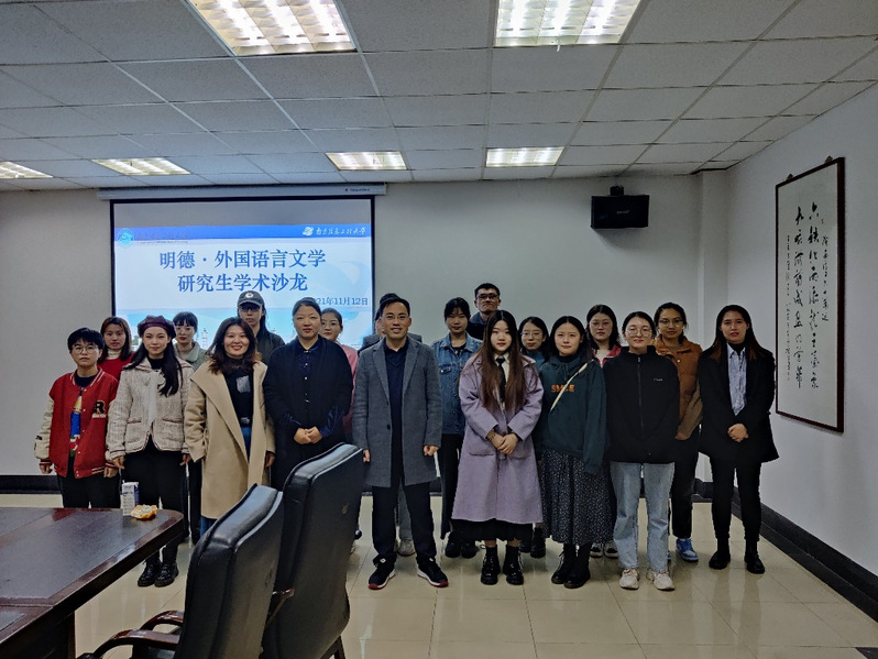 嘤其鸣矣,求其友声!为营造浓厚的科研氛围、推动学术交流及提升研究生学术能力、继承和发扬365英国上市网站官网学术研究“传帮带”的优良传统,11月12日下午,明德·外国语言文学研究生学术沙龙(第5期) 暨新老生见面会在文德楼N402会议室举行。参加本次活动的有2019、2020、2021级外国语言文学专业全体研究生及学院朱琴副教授、袁煜副教授、孙传玲副教授、陈中毅副教授。