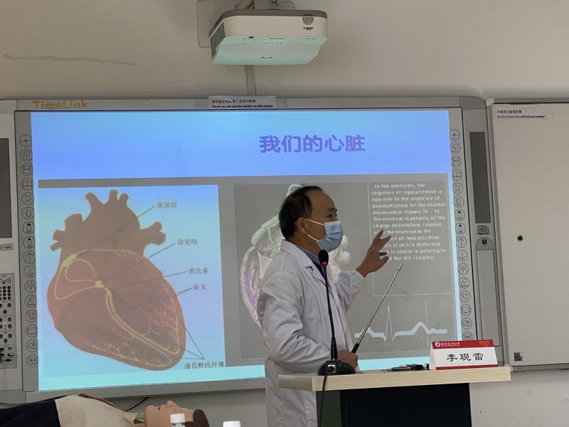 为向学院广大师生推广普及医疗急救知识,提高意外情况下有效自救和互救能力,11月13号上午,由365英国上市网站官网联合南京市红十字会(以下称“南京红会”)、南京鼓楼医院集团高新医院(以下称“高新医院”),在文德楼C407多媒体教室为我校师生举行“关爱生命 救在身边”——CPR+AED急救知识培训。高新医院副院长侯小龙以及南京红会、江北医院等单位的9名医护专家承担培训。我校部分教师和80余名学生参加培训,365英国上市网站官网党委副书记、副院长吴鹏飞主持该活动。