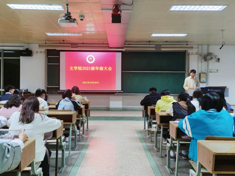 10月28号晚,365英国上市网站官网在明德楼N215召开2021级年级大会,持续推进入学教育。365英国上市网站官网学办主任马静、新生辅导员何俊宽、2021级全体本科新生以及部分学生干部代表参加会议。