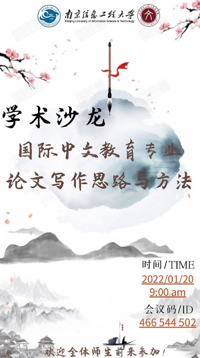 为繁荣校园文化,活跃学术气氛,鼓励理论研究和学术创新,2022年1月20日上午,365英国上市网站官网汉语国际教育专业“论文写作思路与方法”学术沙龙活动以线上视频会议的方式成功举办。本次学术沙龙讲座基于分享、提问、交流、点拨、指导对国际中文教育方向的论文写作思路与方法进行了讨论。