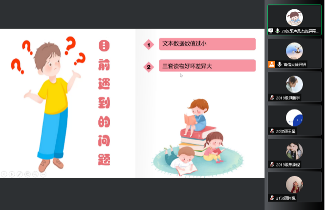 在接下来的汇报交流中,2020级汉硕专业的12位同学均展示了目前论文的进度情况并提出问题,徐开妍老师逐步引导,对每位同学的疑惑一一解答。在此过程中,研二同学的选题及写作经验对研一及本科同学都有很大的启发,本硕同学也都积极就感兴趣的研究方向深入思考并参与讨论,为学姐学长提出了很多有价值的建议。讲座的最后,徐开妍老师对活动进行总结,并从论文格式、研究实践、相关概念理论等各个方面进行指导。