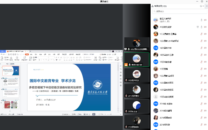 本次学术沙龙包括两大板块:一是由中文系专业教师就学术论文写作的基本规范及常见问题进行总结;二是由2020级研究生围绕目前毕业论文的进展情况加以汇报并就存在的问题进行探讨。活动由徐开妍老师主持,多位中文系教师进行在线指导,汉语国际教育专业全体研究生、18、19级全体本科生以及20、21级部分本科生共120余人积极参与其中。讨论持续进行了4个小时,气氛热烈,师生都受益匪浅。