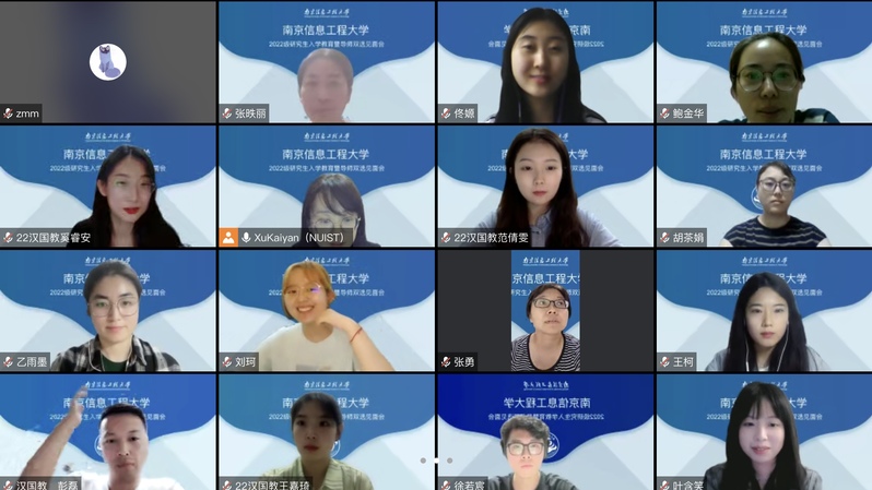 随后,各硕士点分别组织线上导师双选见面会。各位研究生导师逐一进行自我介绍,内容包括自己的学术背景、研究领域、主持课题、招生要求等方面,紧接着各位研究生新生也依次做了自我介绍,简述了各自的毕业院校、学科背景、个人特长优势和研究志趣等。自我介绍迅速拉近了师生间的距离,增进了彼此了解,提高了师生双选效率,为师生双方进一步的沟通和交流架起了桥梁。