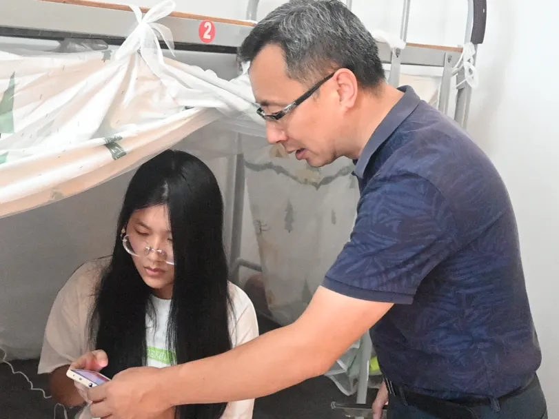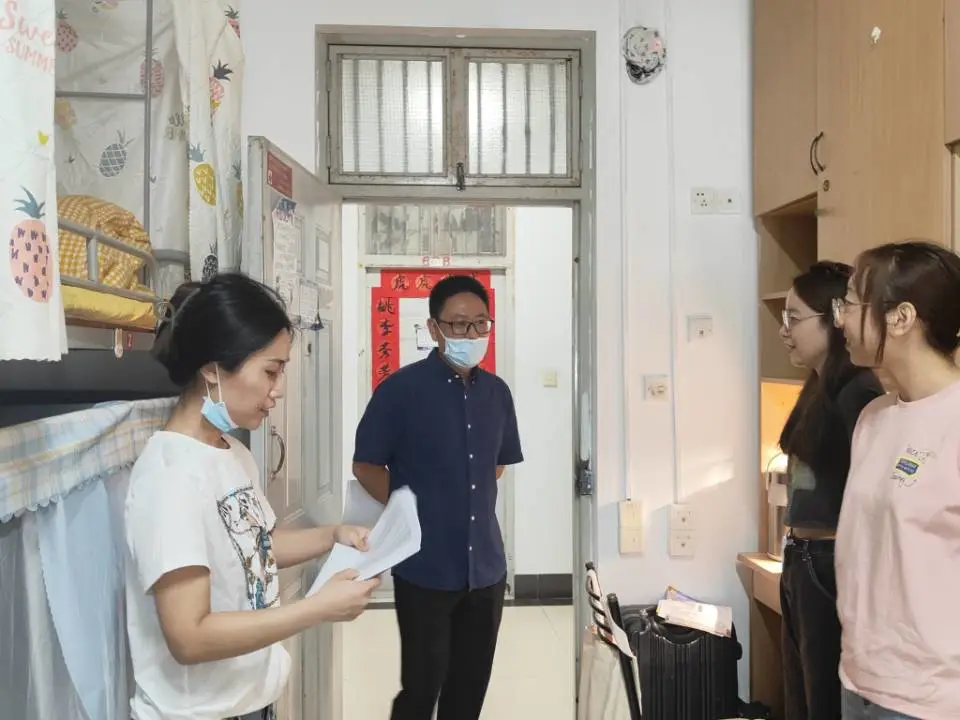 随后,院领导分组带领辅导员和班主任,进入不同宿舍楼栋和楼层慰问新同学。他们叩响了每一间宿舍门,了解新生到校后的生活情况,与新同学们亲切交流,欢迎他们来到365英国上市网站官网这个大家庭,向新生介绍校情和校园环境,对他们在南信大的求学生涯寄予美好的祝愿,希望新生可以
