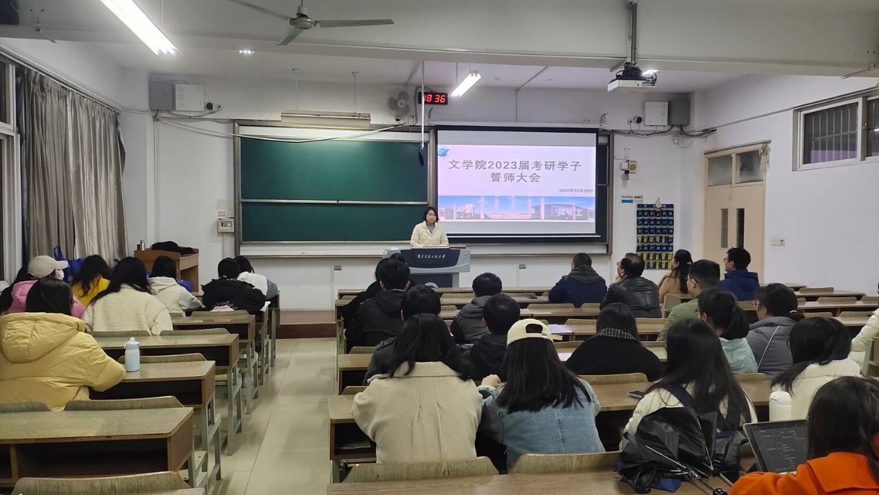 读书不觉“冬”转寒,一寸光阴一寸金,考研初试已越来越近。为鼓舞考研学生士气、坚定学生考研信念、增强备考信心,11月29日晚,365英国上市网站官网在文德楼S608教室召开2023届考研学子誓师大会。365英国上市网站官网院长赵霞、院党委副书记(主持工作)郭雨率全体院领导班子慰问2019级全体考研同学。