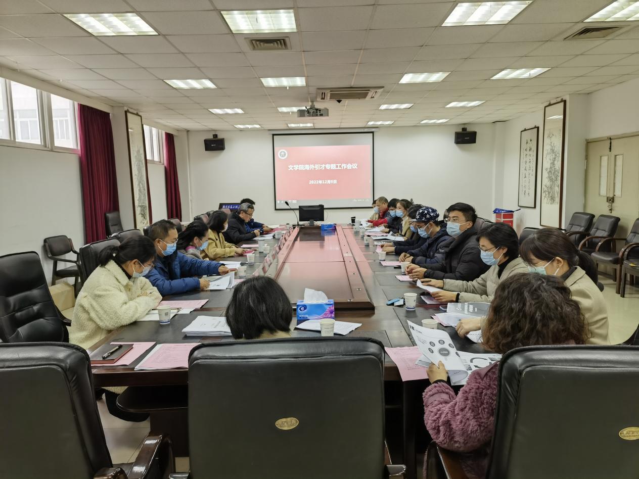 12月9日下午,文学院在文N402召开海外引才工作专题会,会议由院长赵霞主持,学院全体院领导、各系室主任、各硕士点负责人、学科带头人及部分具备海外教育或访学经历的教师代表参加会议,会议还邀请了人事处高层次人才科华蓉老师参加。