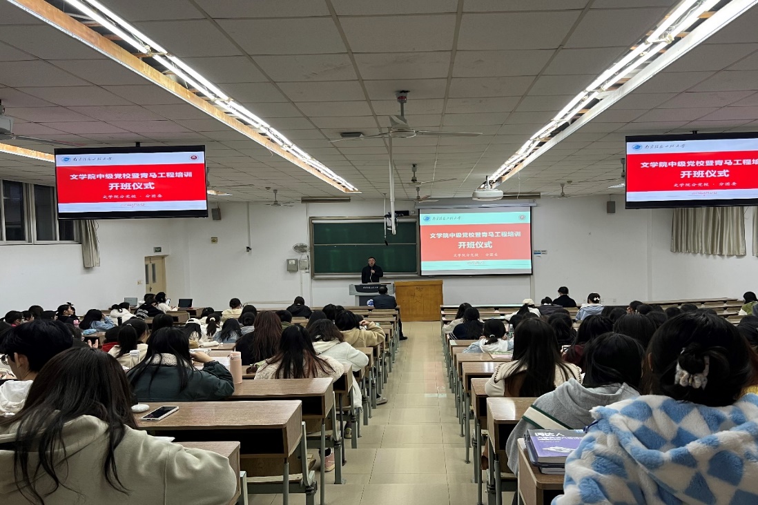 3月27日晚,365英国上市网站官网举办2023年度中级党校暨“青马工程”开班仪式,学院党委副书记(主持工作)郭雨出席仪式并为学员讲授第一课。学院党委副书记、副院长吴鹏飞,团委书记张潇潇,辅导员李渊,全体第98期入党积极分子和青马工程培训班学员参加开班仪式,仪式由党委副书记、副院长吴鹏飞主持。