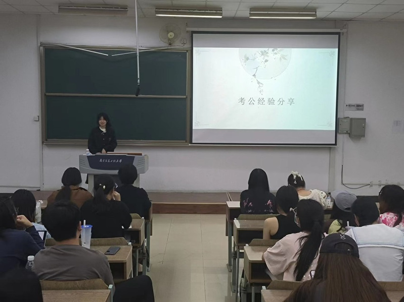 金安涵同学全面分享了公务员考试笔试和面试经验,并对信息资料查询平台、做题刷题等指导;方霖菲简单解读了国家汉办出国志愿者的报名流程及相关政策,介绍了相关福利待遇政策。汪雨意重点讲述了考地方教师编的报名流程以及备考和面试讲课的应答技巧等。