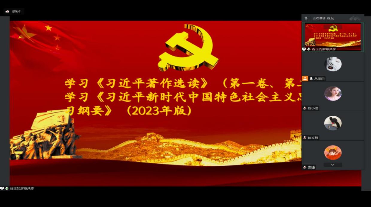56日,英语系教工党支部召开主题教育会。党支部书记陈梅松老师带领全体党员认真学习了习近平总书记在中央主题教育工作会议上的重要讲话精神,传达了学院主题教育工作实施方案。她要求,全体党员要认真学习领会习近平新时代中国特色社会主义思想,提高政治站位,以学铸魂、以学增智、以学正风、以学促干,把习近平新时代中国特色社会主义思想转化为坚定理想、锤炼党性、指导实践和推动工作的强大力量,为学院事业高质量发展做出更大贡献。